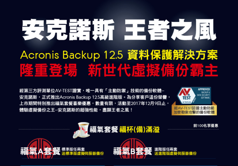 Acronis, 品牌消息安克諾斯Acronis True Image 2017 #1個人備份還原軟體 提供創新突破的勒索軟體防護技術 歡慶上市全系列買一送一全球資料備份與災難復原專家 – 安克諾斯Ac… allen2017-02-21