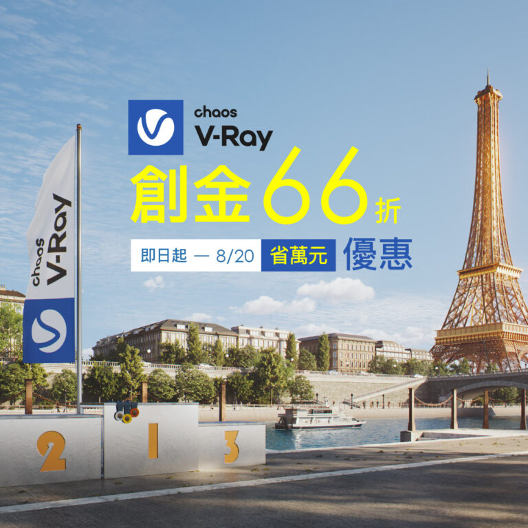 於活動期間新購 V-Ray Solo 或 Premium 商業授權(年約),可享有66折超低優惠