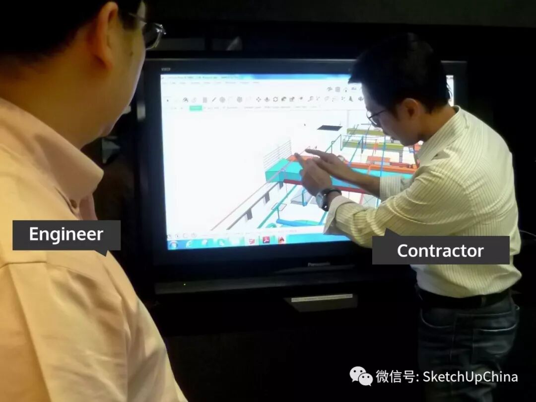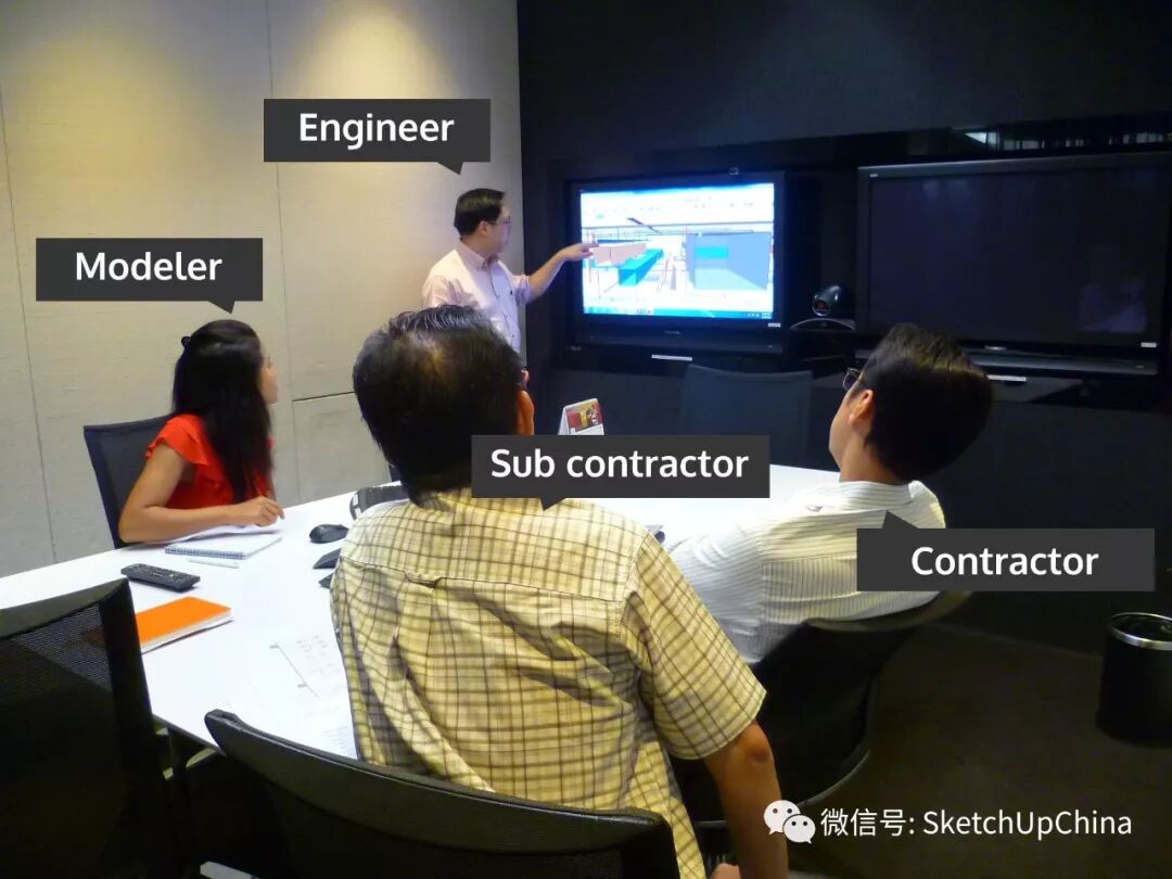 Charles :在我們的會議上你可以看到一群來自不同專業的人,他們一同看著一個在大屏幕上旋轉的 SketchUp 模型。會議主持者並不能夠解答所有的問題,他其實更多的是“主要的提問者”。整個團隊一起回答這些問題,然後在實時模型中標註並截圖。他們談論哪裡需要改變,有時甚至是現場即時進行設計改變。因此這是一個充分的團隊協同工作。