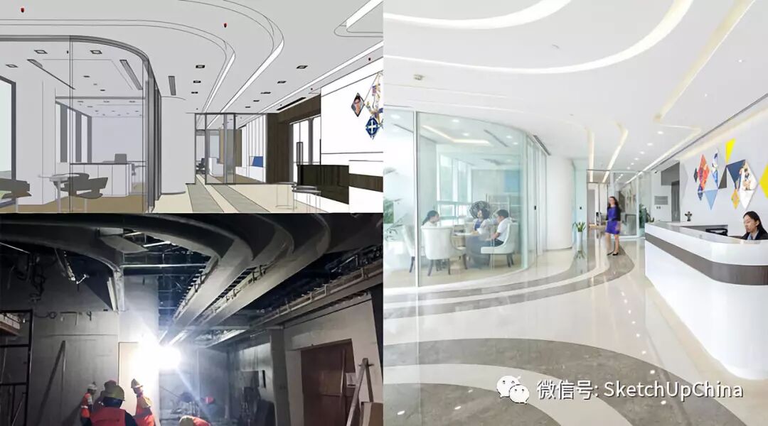 使用像 SketchUp 這樣靈活的工具,對於商業室內設計是非常重要的,這些類型的項目在整個項目過程中會一直不斷地進行修改。對於更傳統的建築項目,有很多事項需要在施工前提前確認,諸如施工許可、結構計算以及採購材料。然而對於辦公場所,甚至超大型辦公空間,設計和變更一直都在持續地發生著,甚至建築面積大小也很可能會發生很大的變化,不同部門的位置佈局會移動,企業的合併和收購也可能會改變辦公室的整體格局。SketchUp 的高靈活性使整個團隊(包括客戶、專家和承包商)能夠跟上進度。
