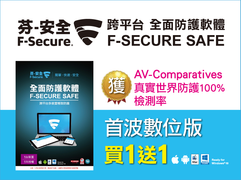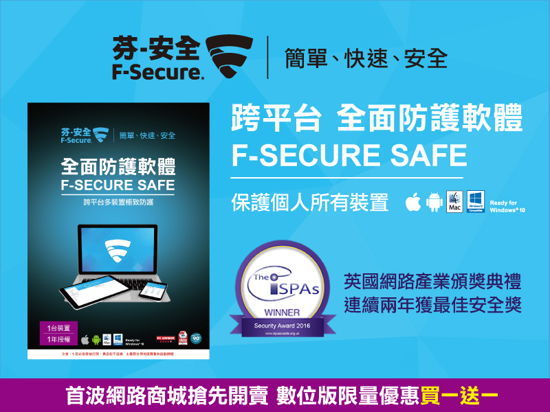 芬-安全 F-Secure Safe 跨平台 全面防護軟體中文版首次在台上市-簡單、快速、安全 連續兩年獲最佳安全獎