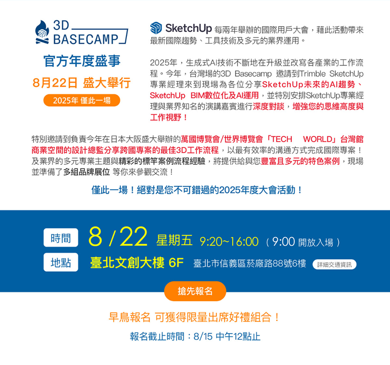【3D BASECAMP — AI時代 3D設計大未來】SketchUp年度國際論壇活動